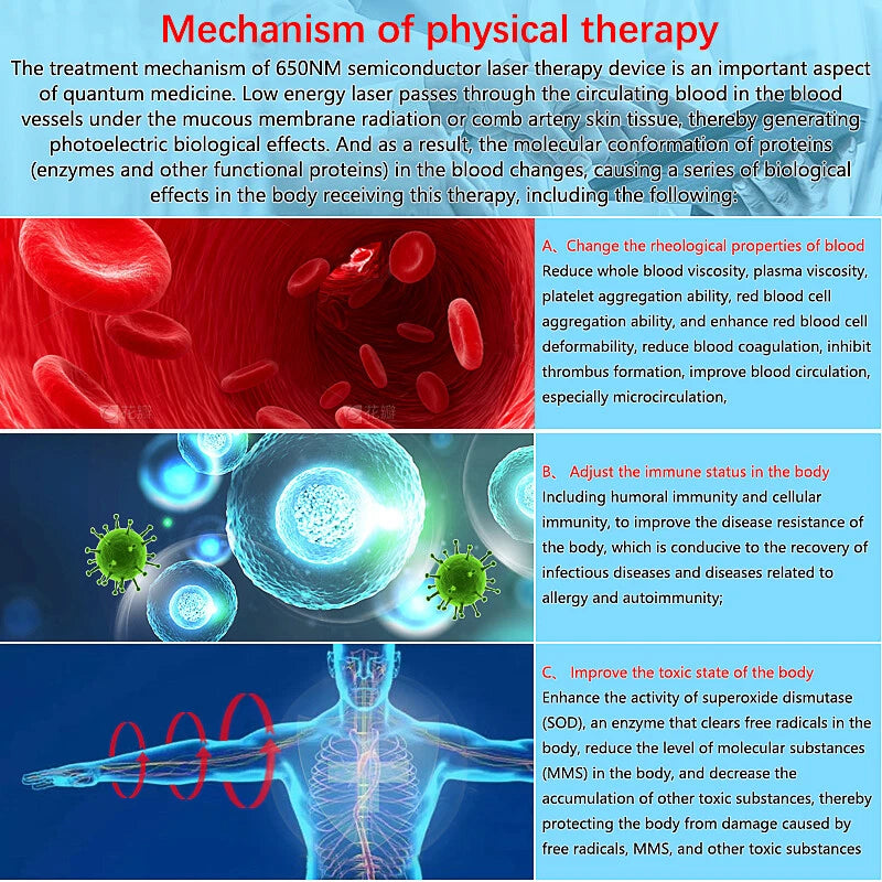 650nm laserová, akupunkturní cévní masáž. Nezbytná pro seniory, pro hubnutí, vysokou hladinu tuků v krvi a snížení krevního tlaku.