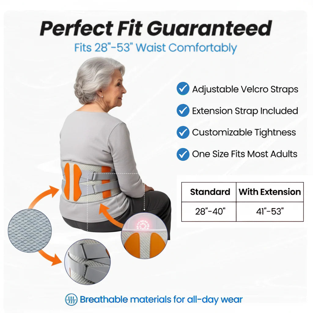 Tato dvouzónová komprese jemně narovnává páteř, zlepšuje držení těla a okamžitě uvolňuje tlak na sedací nerv – pomáhá vám pohybovat se s menší bolestí a cítit se sebejistěji při každodenních činnostech.