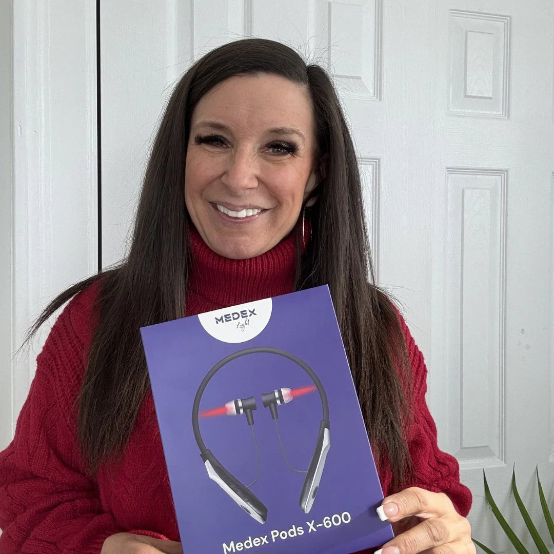 "Po více než dvou letech neustálého zvonění v uších a každodenního nepohodlí se začlenění Medexu X-600 do mé rutiny stalo uklidňující součástí mé wellness terapie. Je to skvělý doplněk mé péče o sebe!" - Robin D.