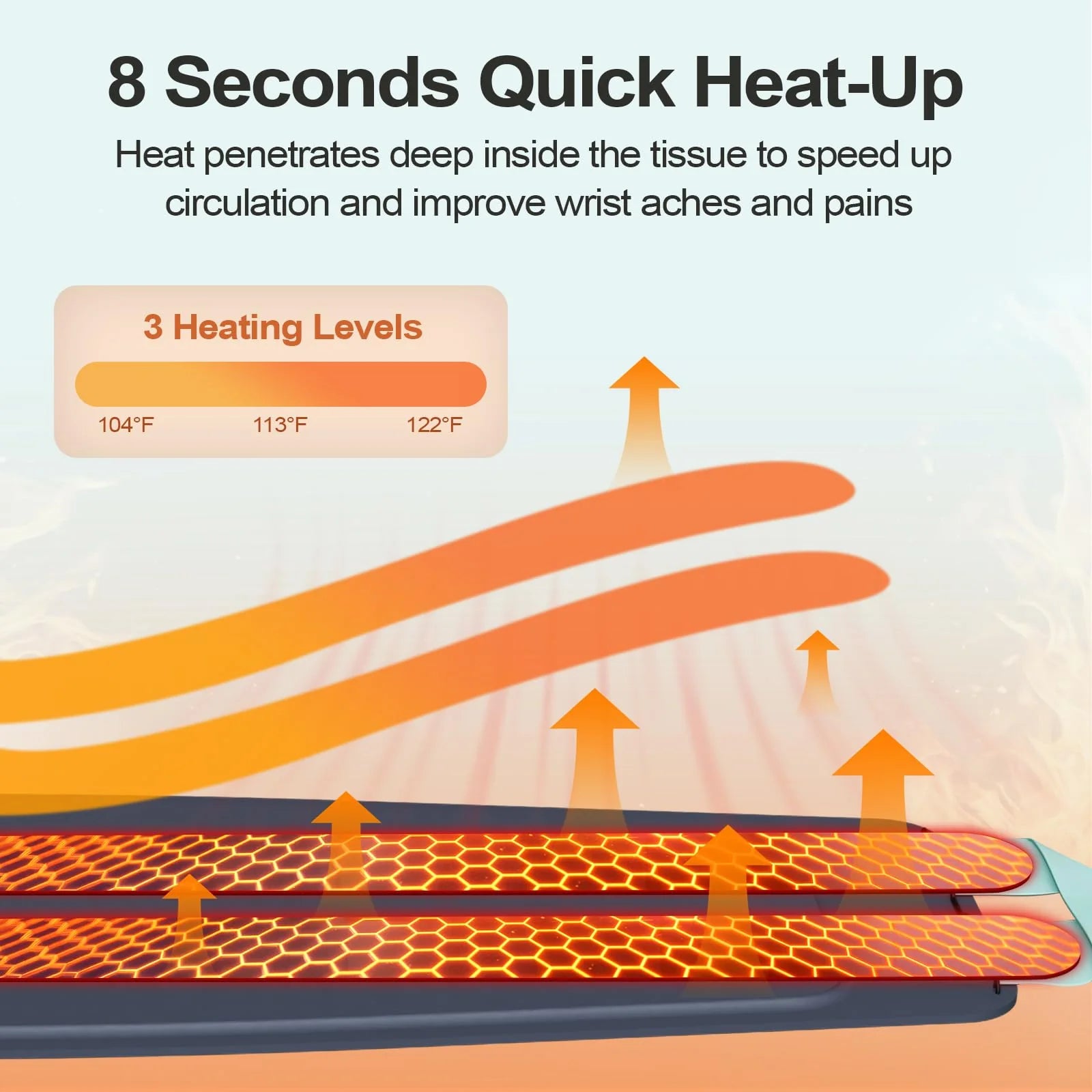 Nabízí 3 úrovně tepla, které vyhovují vašemu pohodlí – od jemného tepla až po intenzivnější teplo pro bolavá zápěstí a ruce. Mezi nimi můžete jednoduše přepínat.