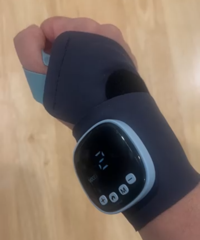 Tento produkt je pohodlný a perfektně sadí mému zápěstí. Minulý rok jsem začal hrát tenis a zranil jsem si zápěstí. Tento produkt mi poskytuje konzistentní teplo a vibrace na zápěstí. Normálně ho nastavuji na 3-4. Ale někdy po tenisu na 5-6. Cítím, že mé zápěstí je mnohem lepší, když ho používám po tenisu ve srovnání s dobou, kdy jsem ho nepoužíval. Pomáhá uvolnit svaly. Doporučuji ho každému, kdo má nějaké sportovní zranění na zápěstí.