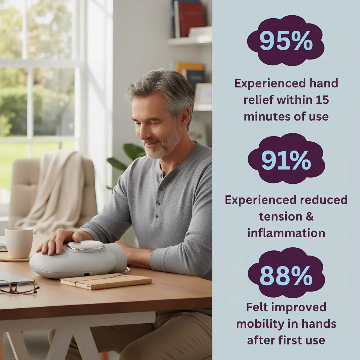 Poskytuje účinnou úlevu od každodenních problémů, jako je ranní ztuhlost, necitlivost a brnění a celková únava rukou.